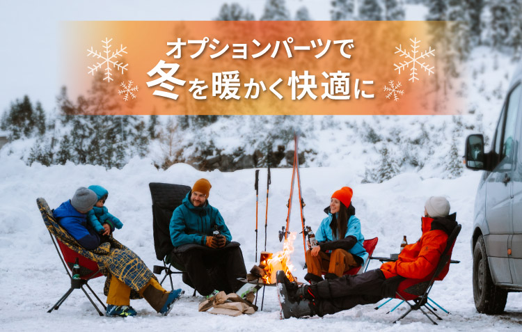 専用のオプションパーツを組み合わせることで、キャンプシーンをより快適な空間にすることができます。充実のラインアップから、冬を暖かく過ごすためのアイテムをご紹介します。